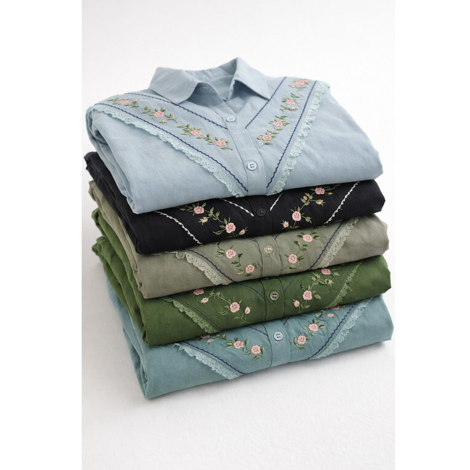شومیز الیاف طبیعی گلدوزی شده زنانه مدل سوگل