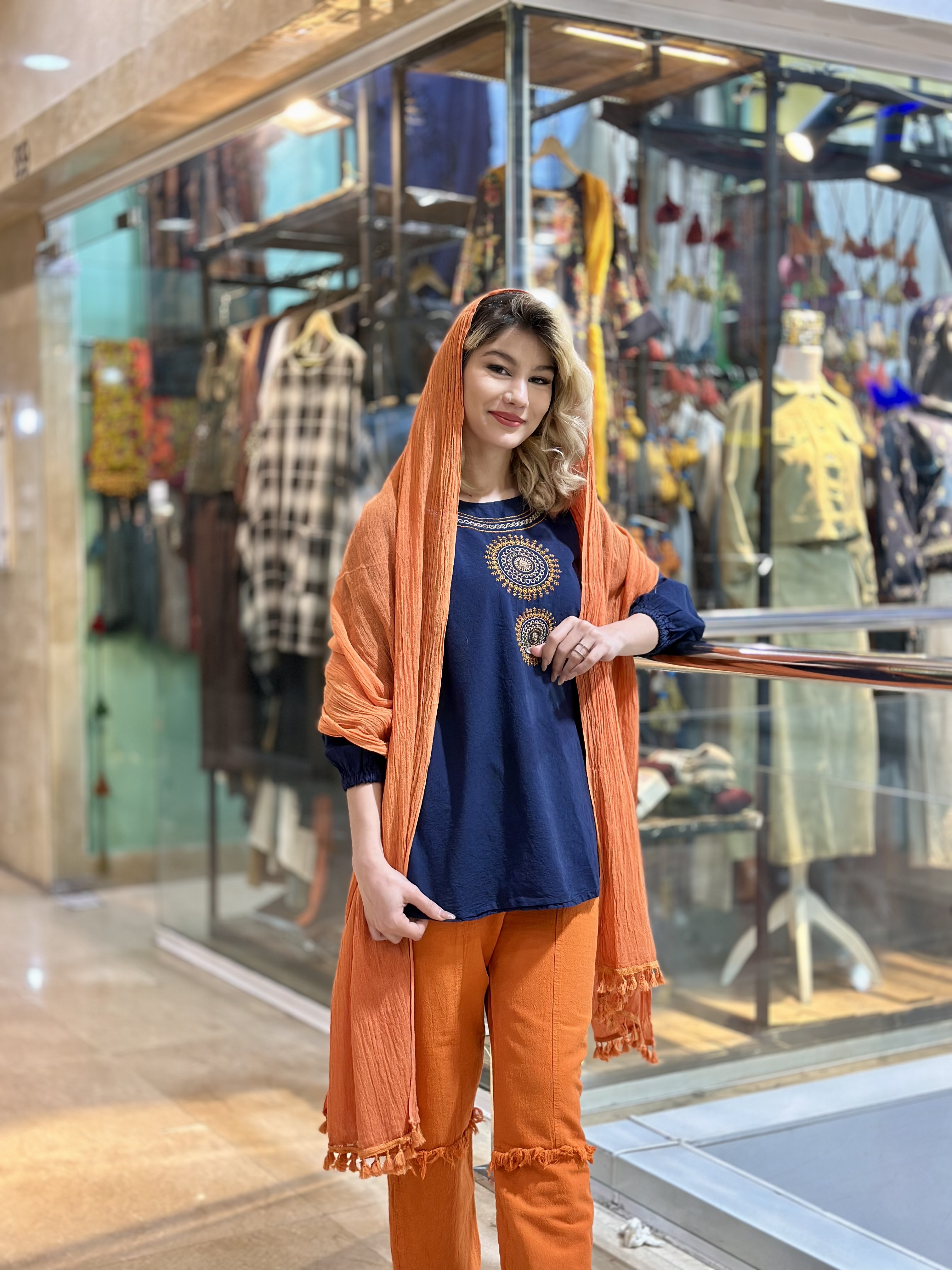 ست دوتکه پانچ و دامن لینن مدل شیراز