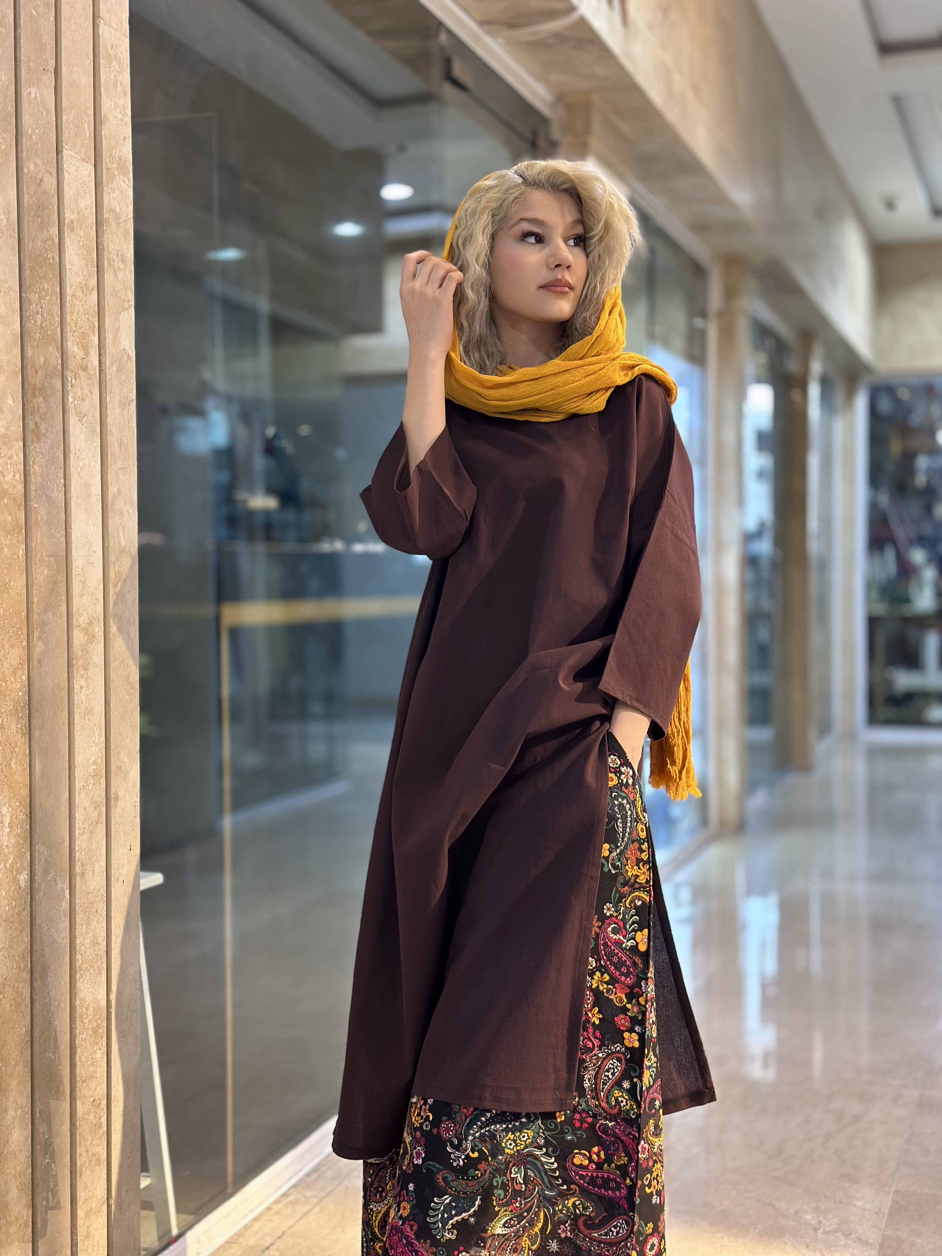 ست تونیک و دامن لینن گلدار هنری مدل هوتسا