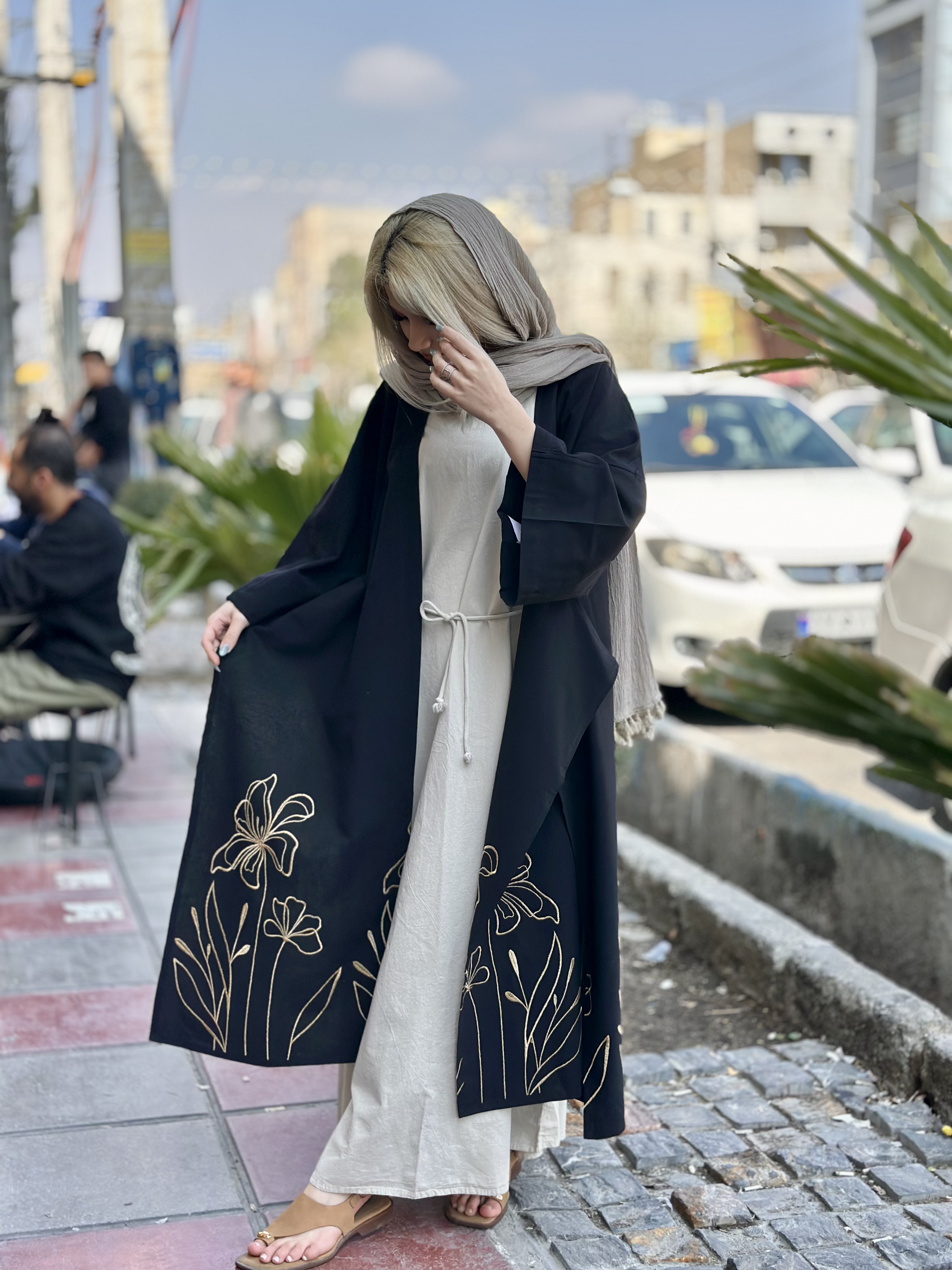 پانچ بلند جلو باز گلدوزی شده لینن زنانه مدل بهار