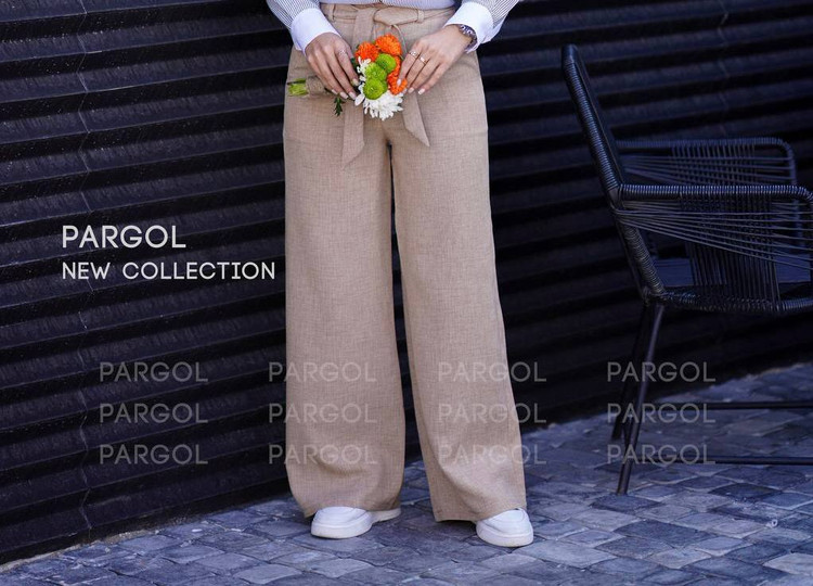 ویژگی: پشت کمر کش میخوره و جلو کار دکمه و یه کمربند پارچه ای داره