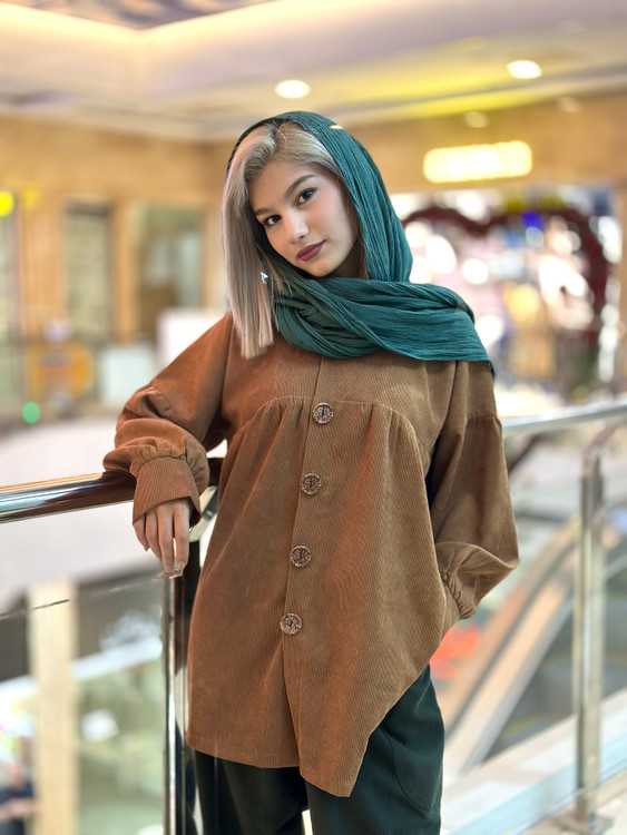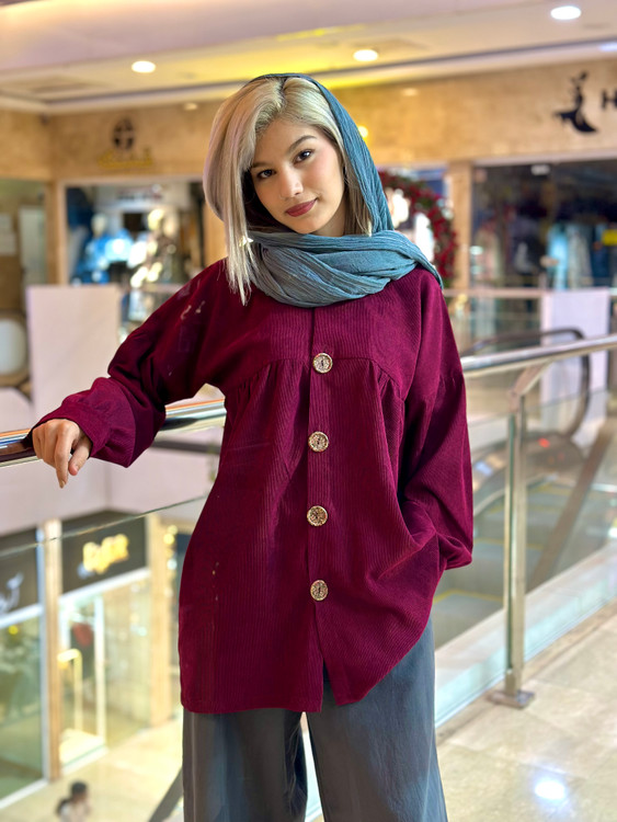 شومیز مخمل کبریتی ، فری سایز تا ۴۴ ، با قد ۷۷، دور بازو ۳۹، قد آستین ۵۸