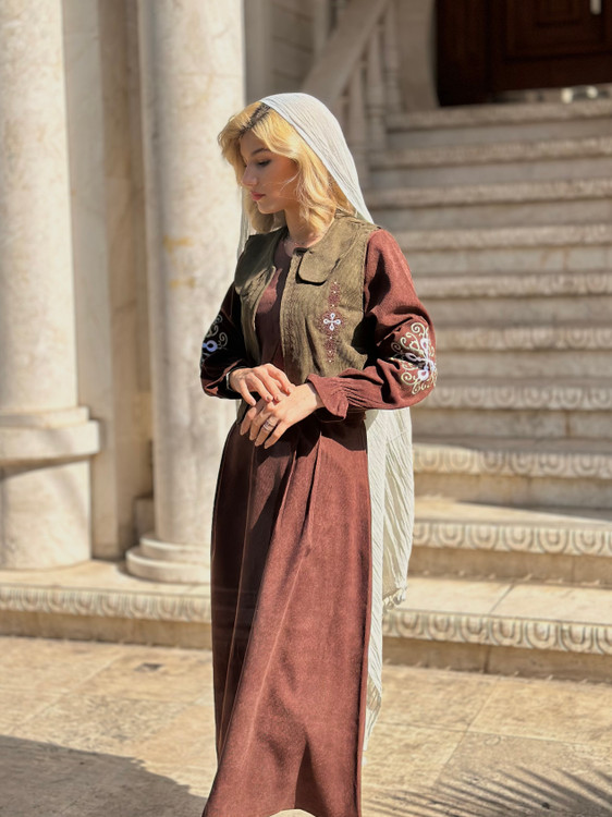 ست جلیقه و پیراهن، استایل ترند پاییزی، پیراهن پاییزه زنانه، مخمل کبریتی زنانه، پیراهن مخمل. جلیقه زنانه، ست هنری زنانه، ست هنری دخترانه
