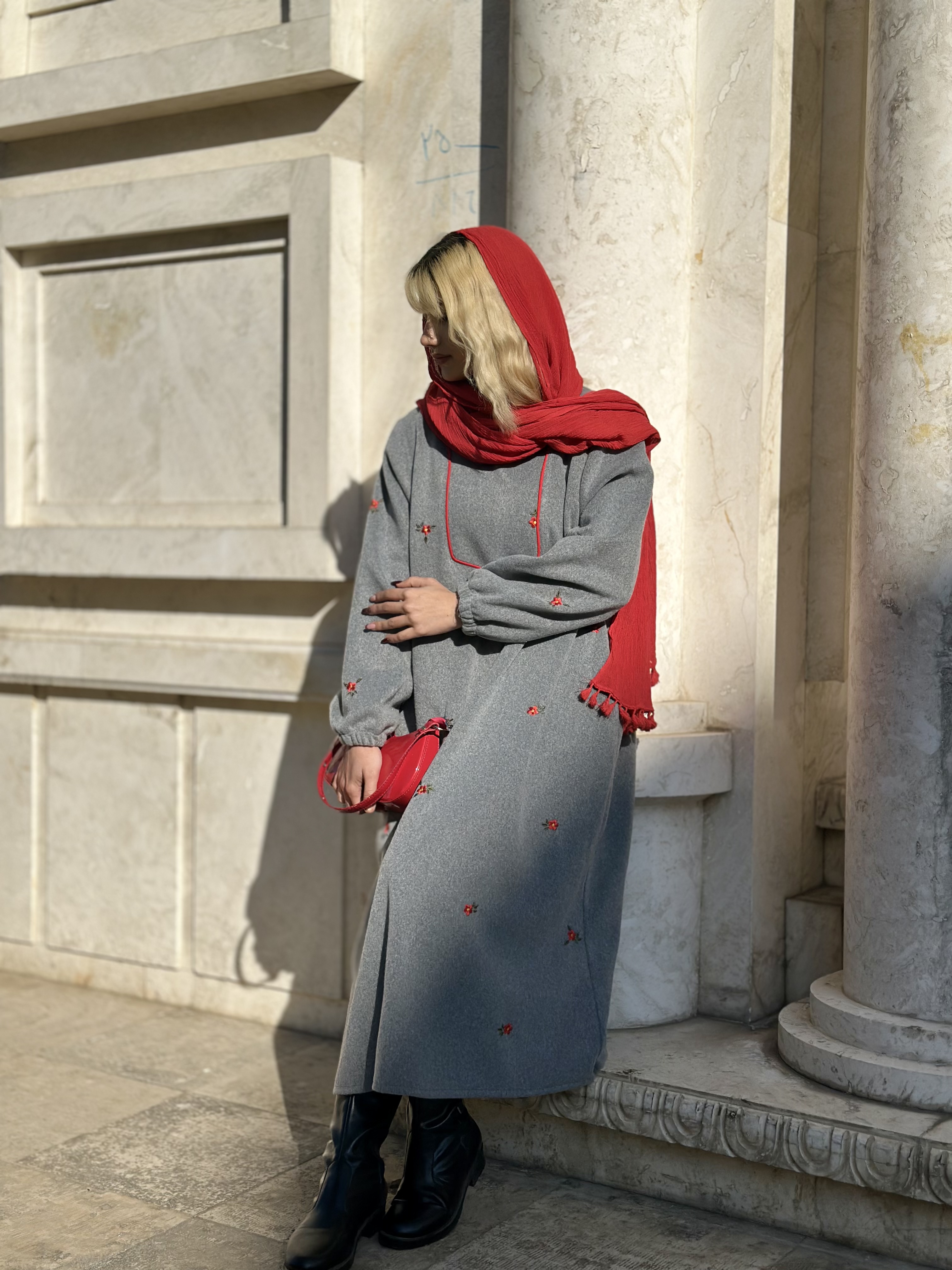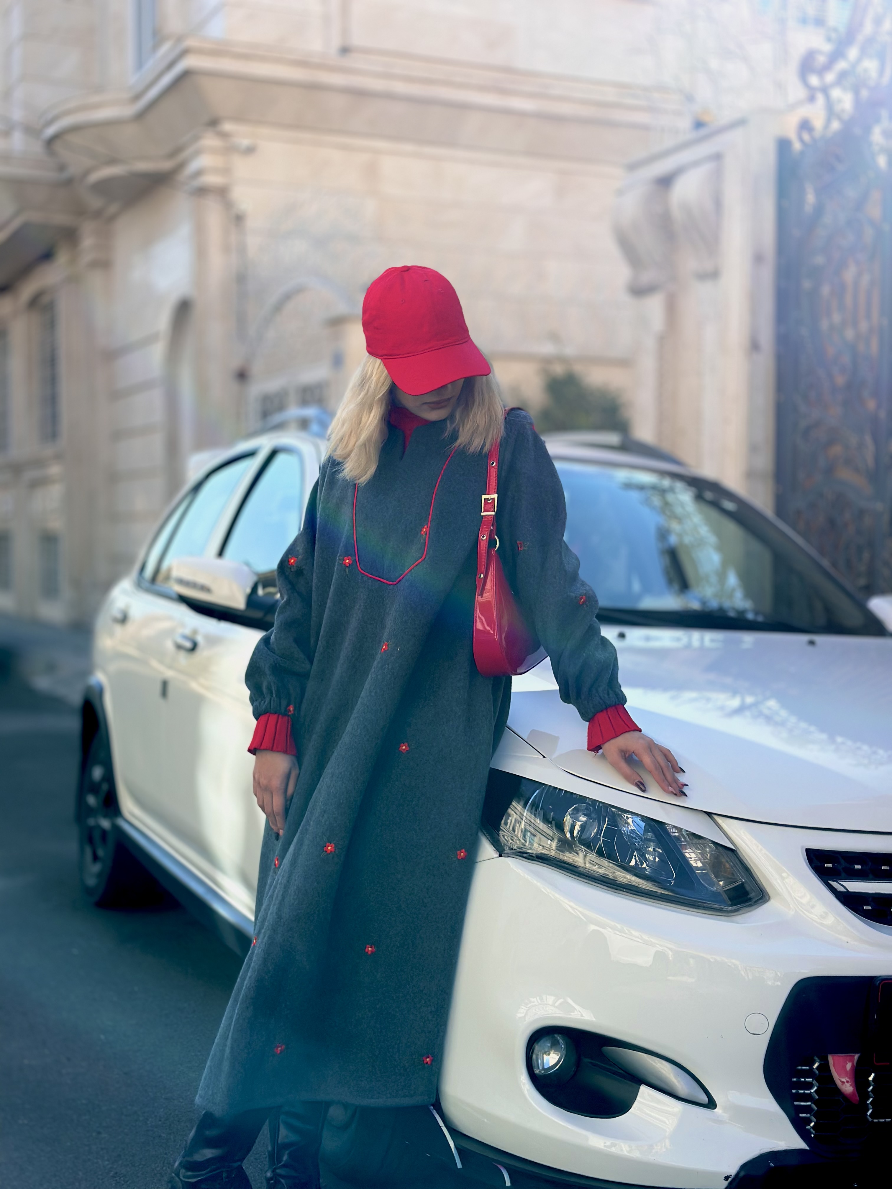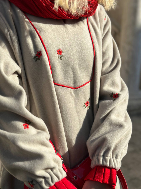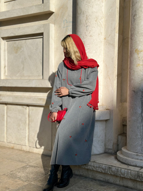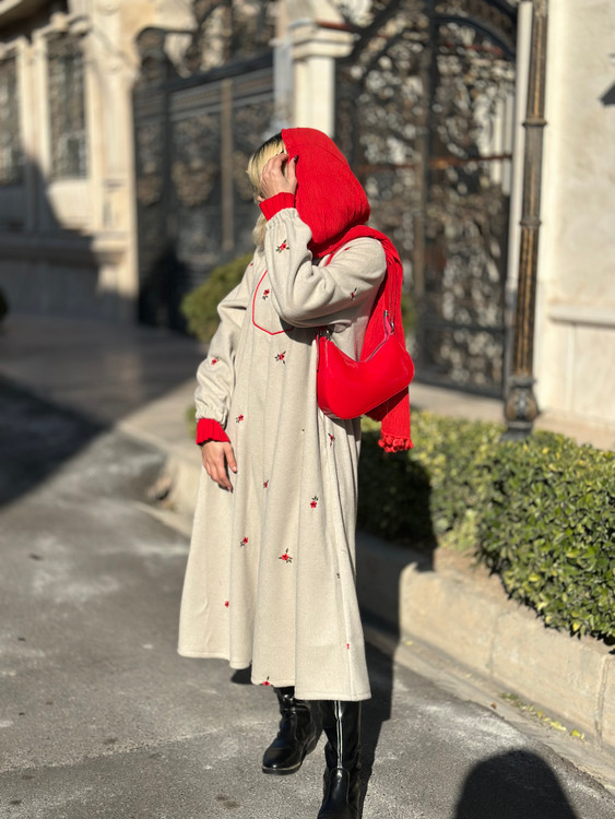 پالتو پیراهنی فوتر زنانه قد ۱۲۰، دور سینه ۱۲۰، دور بازو ۴۲، کاملا گلدوزی شده ، سر آستین کش میخوره ، تو درز پهلو جیب داره و جلو یقه مغزی دوزی شده