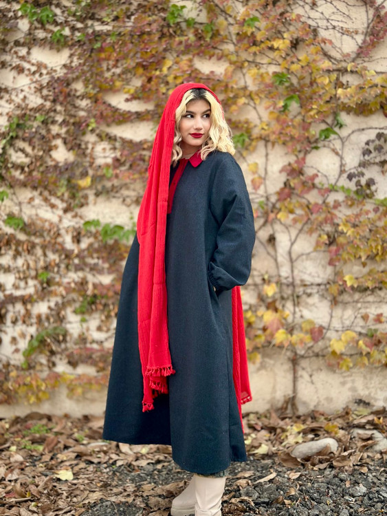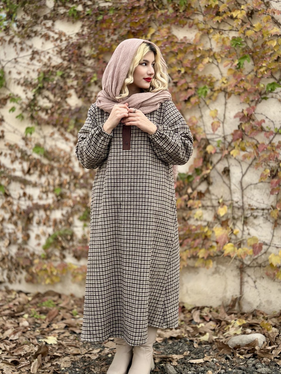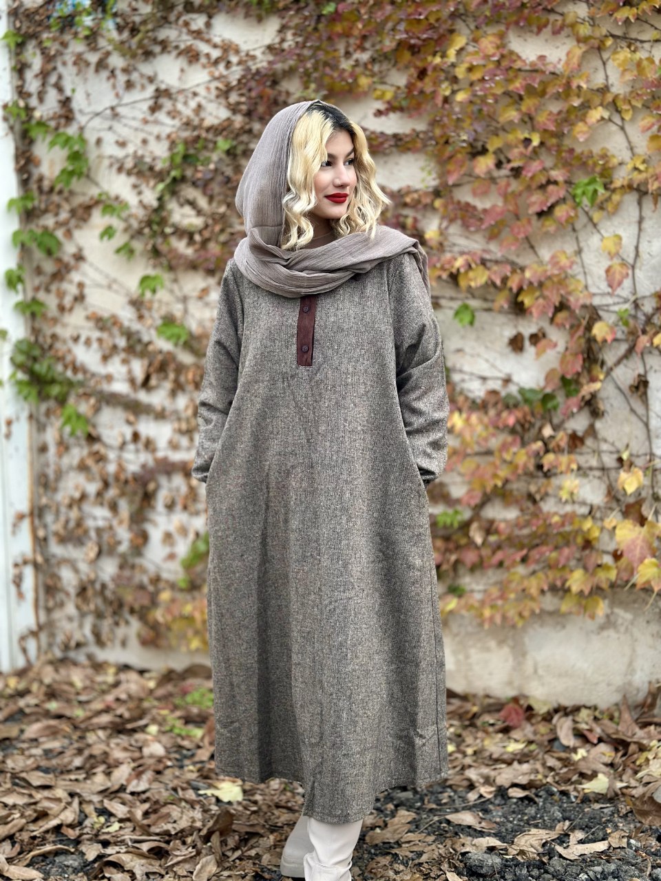 پیراهن پشمی بلند زنانه ، دو تا جیب تو درز کناره میهوره و جل کار سه دکمه داره ، فری سایز تا ۴۶ ، قد کار ۱۱۶، بدون آبرفت