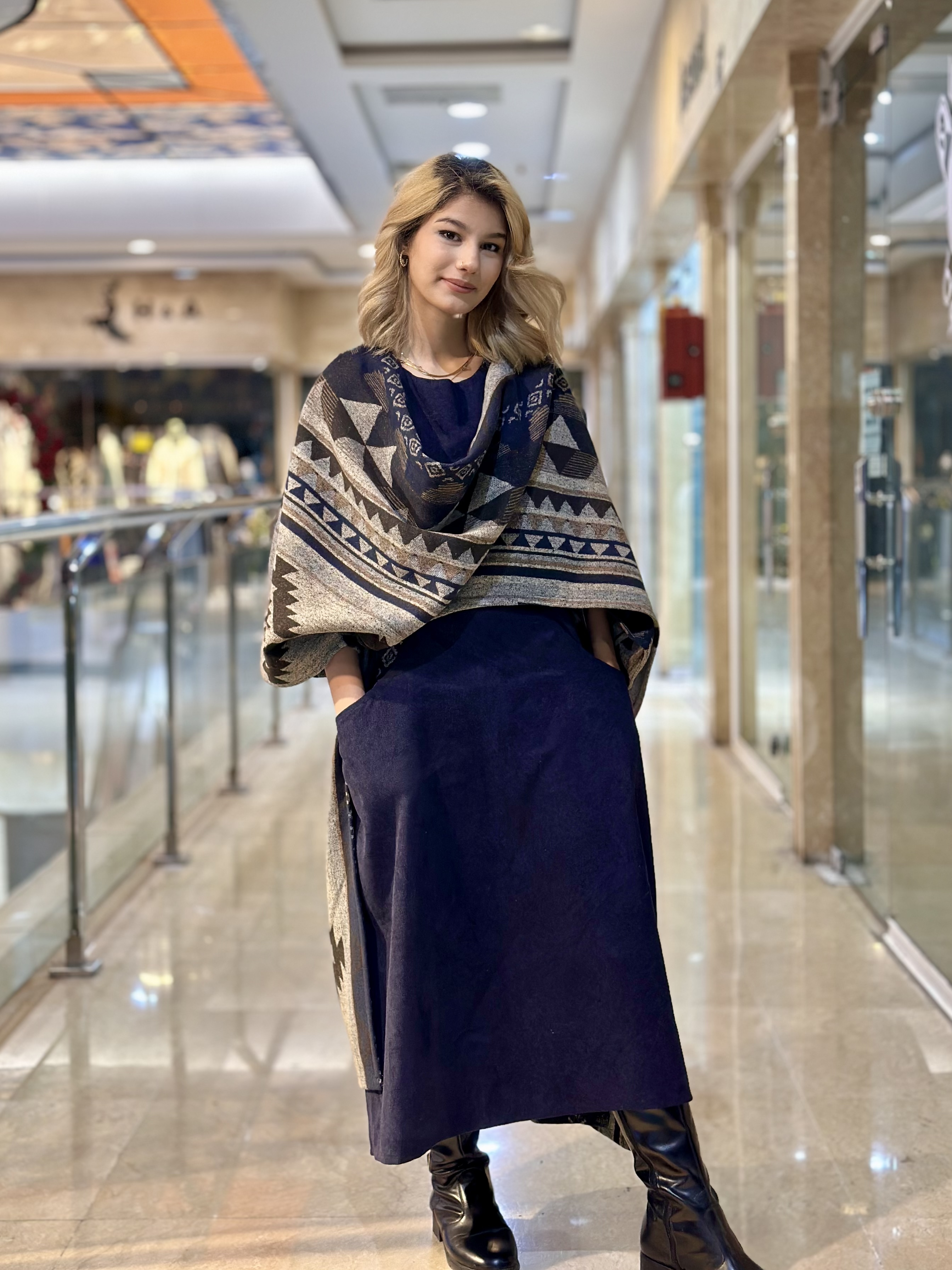 پانچو فوتر بلند جلو باز مدل شالی زنانه