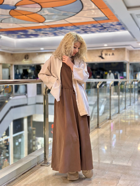 سارافون بلند نخی زنانه با جنس الیاف طبیعی با بندتنظیم سایز، بدون آبرفت و بدن نمایی🫶