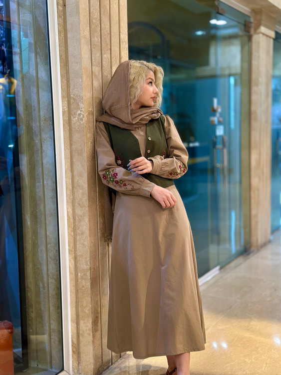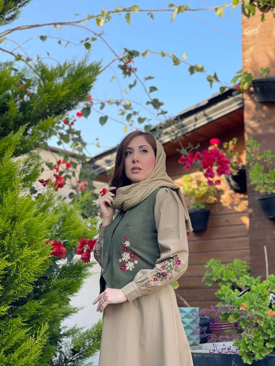 پیراهن سایز دو: قد ۱۲۳، دور سینه ۱۱۴، دور کمر ۹۸، دور باسن ۱۴۰، قد آستین ۶۰ ، دور بازو ۴۶